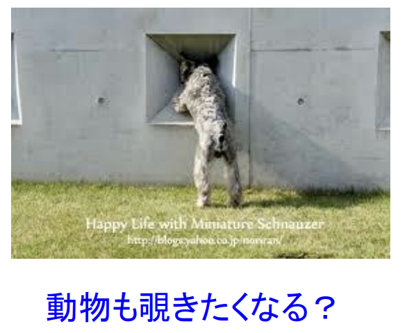 「強制しない方法」の「仕掛学」の提唱者である松村教授が出版した「なぜ人は穴があると覗いてしまうのか」(著者:松村直宏 発行所:幻冬舎)を紹介します。仕掛学を思いついたきっかけが「覗いてみたくなる穴」の存在だったようです。前ブログ「その気にさせるには仕掛けが!!」の添付資料が「shikake」となっていて、わかり難かったかもしれませんので、以下にもう一度添付します。この資料のp.20の左下の写真をご覧ください。犬が穴を覗いている写真、微笑ましく個人的には好きです。動物も人間も変わらないですね。なお、添付資料の説明は、前ブログをご覧ください。