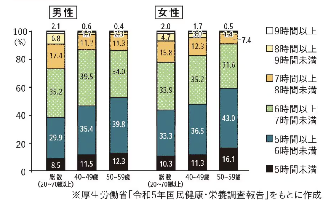脳が疲れてゴミ屋敷化する」というタイトルの記事を読みました。この記事に厚労省の睡眠時間に関するデータが掲載されています。日本人は世界的に睡眠時間が少ないと言われていますが、睡眠時間が6時間未満が3割強もいます。最近時間があれば、スマホを手にしている方を見かけます。寝室に持ち込んで、スマホを見ているとスマホの明るさにより、眠りを誘うメラトニンが抑制されて、眠れなくなってしまいます。「だらだらスマホ」や「マルチタスク」が睡眠障害を引き起こし、翌日のパフォーマンスを低下させてしまいます。「マルチタスク」の合間に息抜きでスマホを眺めると脳疲労を増長させてしまいますので、「がんばり屋さん」は要注意だそうです。