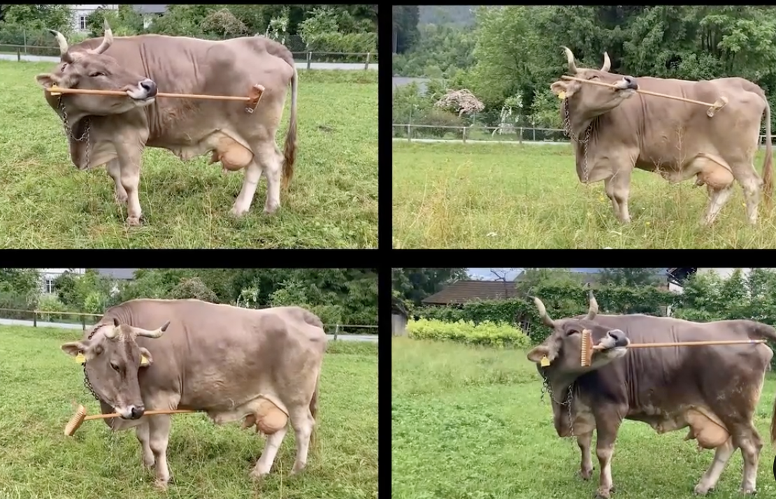 カラスは賢く道具を使うことを以前「カラスは神の使い?」で取り上げました。ウシは鈍重なイメージがありますが「こんなこともできる」や「どちらを向く?」などの能力を有しています。下記記事でウシが道具(デッキブラシ)を使って、自分の身体を撫ぜている動画がありますので、ご覧ください。器用ですね。全てのウシができるかどうかはわかりませんが、他にも能力を有しているかもしれません。先入観を持ってはダメですね。