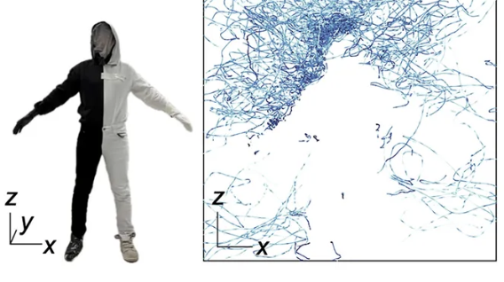 そろそろ蚊が出没し始める季節になってきました。面白い文献が紹介されています。白と黒を比較すると経験的に黒が標的になることは知られていますが、論文に赤外線カメラで蚊を追跡した軌跡が示されています。半分が黒、半分が白の服を着た被験者の周りの軌跡を見ると明らかに黒の周囲に蚊が旋回していることがわかります。蚊は種々のセンサを使って標的を見つけますが、先ずは視覚を用いて黒をめがけて飛んできます。その後、二酸化炭素や体温を検知します。